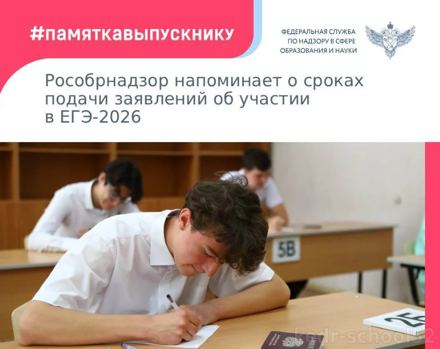 📝 Рособрнадзор напоминает: заявление об участии в ЕГЭ-2026 нужно подать до 1 февраля. Поскольку 1 февраля – воскресенье, срок подачи заявления продлевается до 2 февраля включительно.